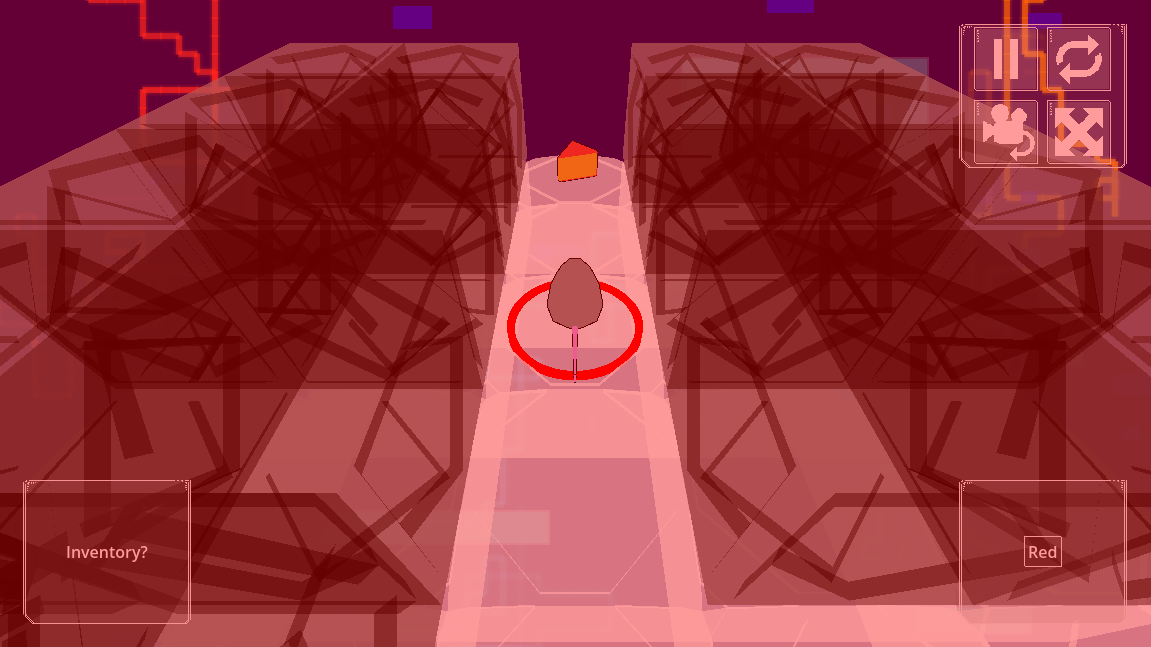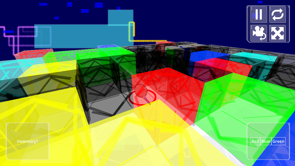 Players control Raticus as he navigates through a digital maze in cyberspace while collecting special items hidden throughout the network. The core mechanic revolves around color masks: activating a mask disables obstacles of that color, allowing Raticus to pass through blocked areas. However, switching masks can also block access to keys or paths the player still needs, so the challenge comes from carefully deciding when to toggle each color in order to solve the maze and reach the goal.